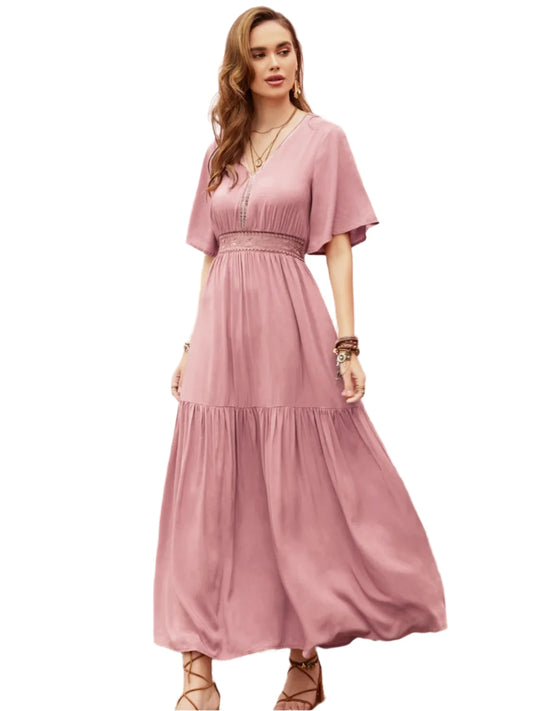 Lace Detail V-Neck Short Sleeve Dress – Elegant Everyday Style
