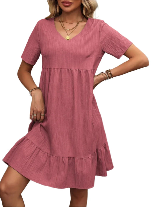 Lane V-Neck Short Sleeve Mini Dress – Effortless Everyday Style